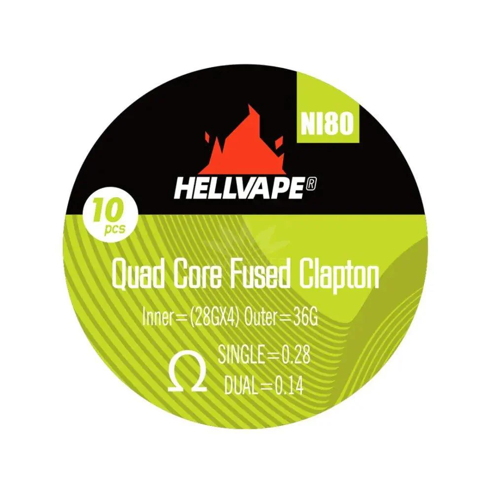 Описание 10 шт. Hellvape Ni80 Quad Core Fused Clapton 28Ga*4+36Ga, набор готовых спиралей
