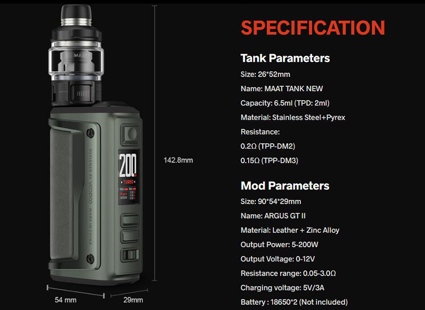 Описание VOOPOO Argus GT II 2 200W Kit, набор